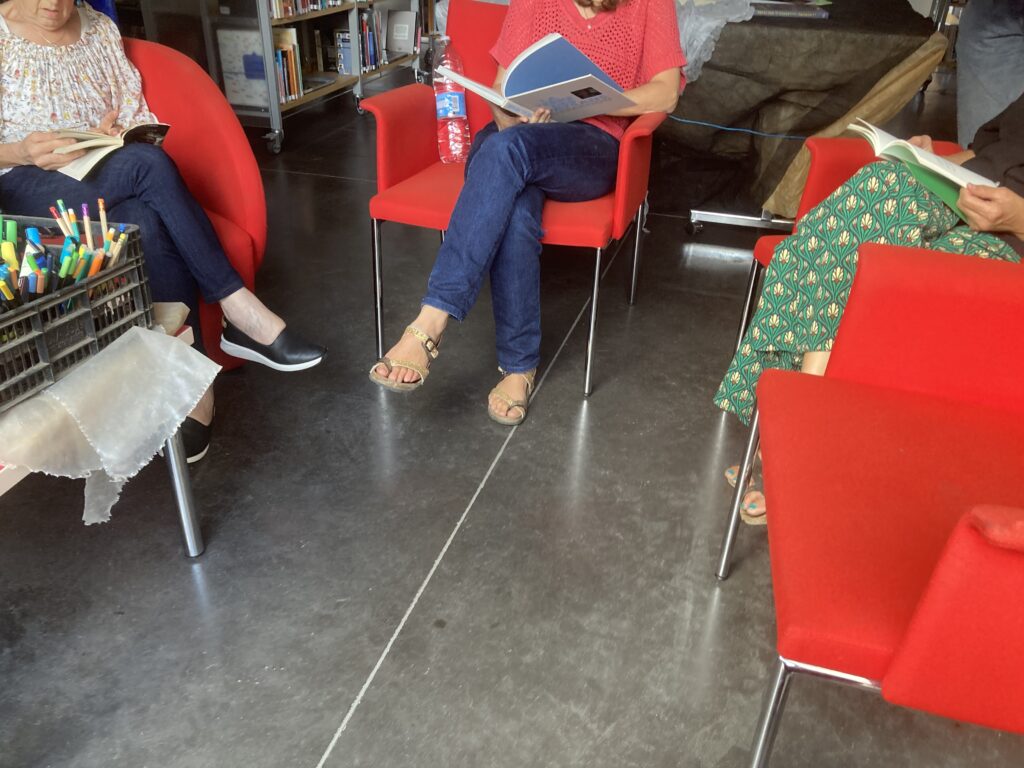 La lecture continue, plus doucement, chacune pour nous, poétique et posée, les discussions s’enclenchent, autour de nos intérêts pour les auteur.ice.s, ce que cela éveillé en nous, des souvenirs de campagne, de bronzage, de chemins de traverse et de grande histoire du 20e siècle.
