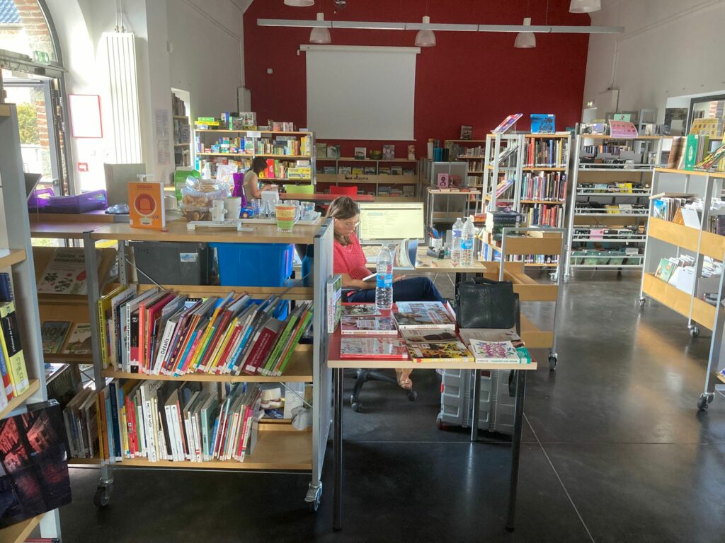 Comme un petit air de rentrée à la médiathèque de Rumegies ce samedi. Il y a du passage, on installe les livres et notre matériel sur les grandes tables rouges et on s’installe dans les fauteuils, près de la grande fenêtre pour lire.