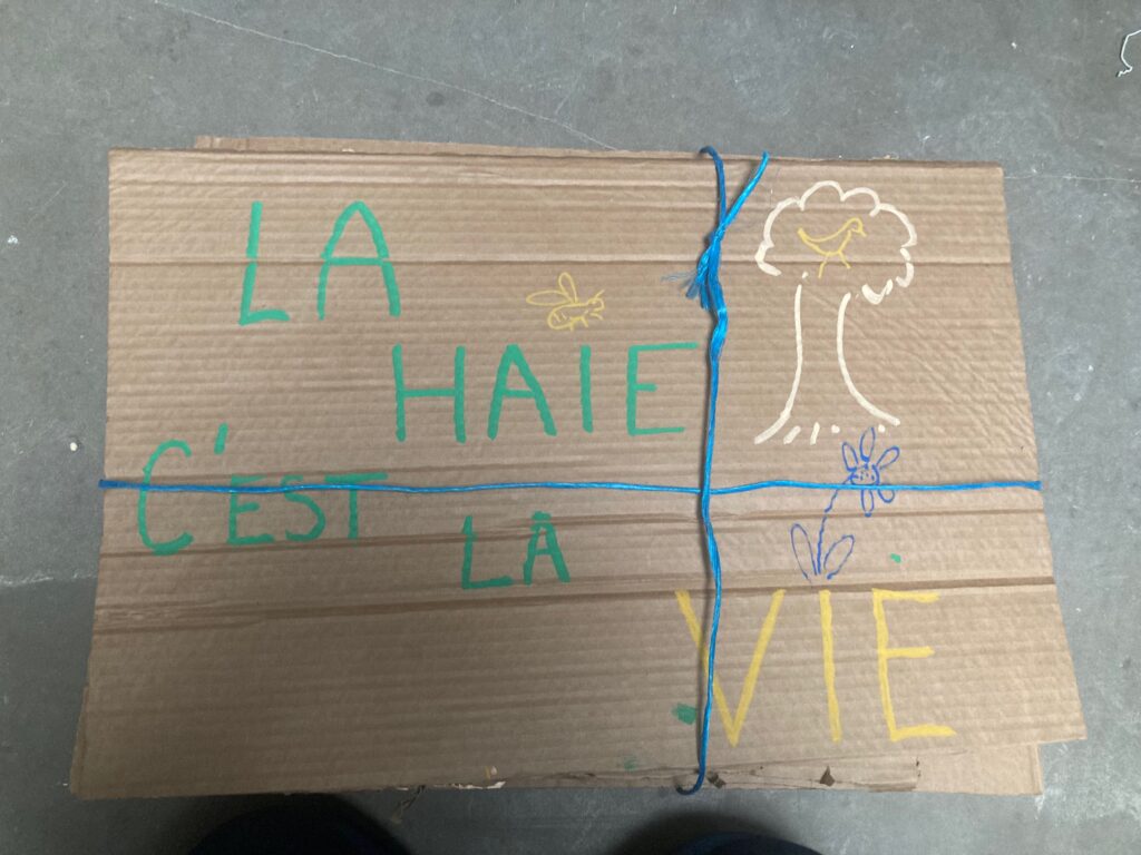 ‘La haie c’est la vie’, ’Réensauvageons l’agriculture’, ‘Terre abusée peut-être, mais pas défaite’, ‘Laissez la terre aux femmes’, ‘Une belle grosse bouffée d’air qui pue’, ‘Je suis née pour célébrer le vivant, cela passe par l’amour pour la vie’, ‘Quand tout le monde sera prêt, je vous donnerai du travail’, ‘Autonomie, liberté, ne nous laissons pas emprisonner par la société’, ‘Plus la nature disparaît, plus les chiens compissent nos trottoirs et nos chats empuantissent nos appartements’, ‘L’arbre c’est la vie, c’est l’amour’.