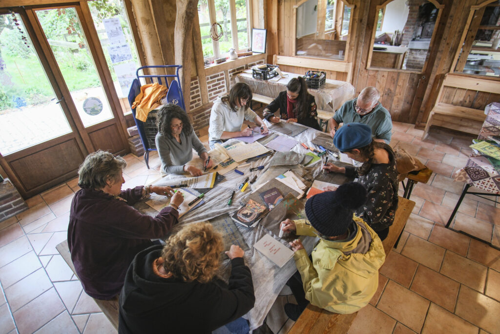 Il y a eu ce moment un peu magique où un participant a lu un extrait de ‘Murmures fertiles’ d’Oréli Paskal sans se rendre compte qu’elle était juste derrière lui en train de dessiner. Il nous a lu un ‘La friche c’est magnifique’ et en lui demandant de se retourner, il s’est trouvé face à l’autrice en personne.